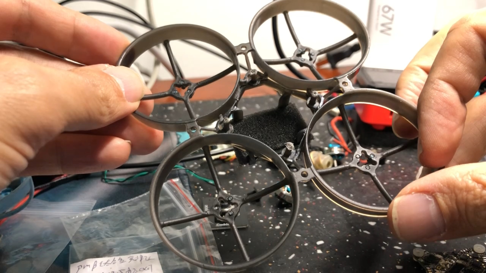 Camera - Caddx Ant with f/1.2 lens or Caddx Ant Lite with f/2.5 lens. the canopy for the Ant Lite is 3D printed, needs to be modified for the regular Ant edition. the motors are 1102 22000kv left from the Meteor75. the props are 乾丰 (gemfan) 45mm-3 (1.5mm shaft). 20AVG battery lead.