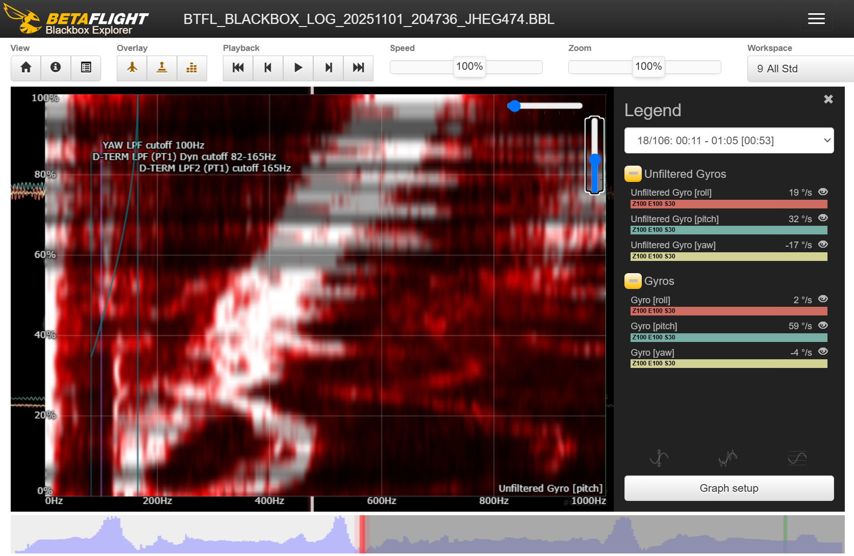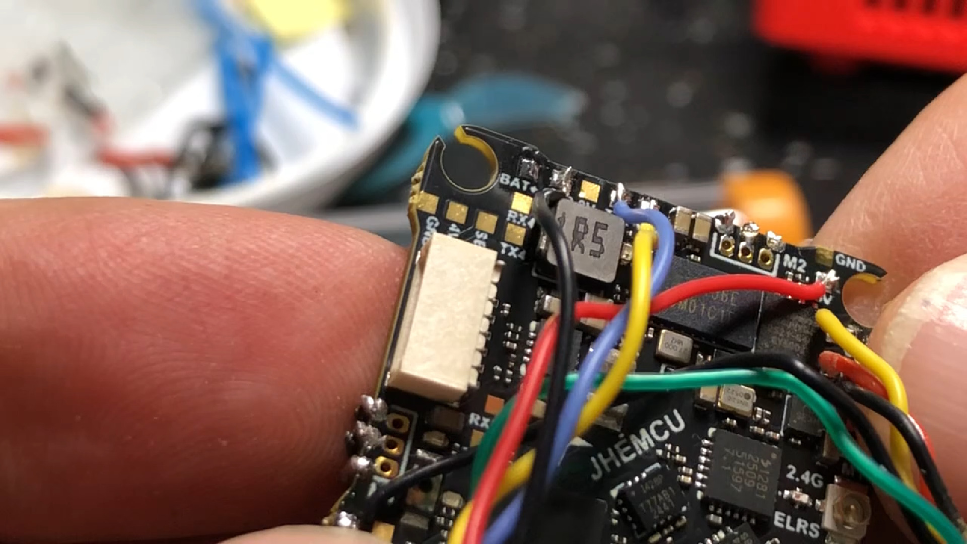 I damaged ESC #2 on the 1S Matrix AIO (Meteor75 Pro), either by running a motor with damaged windings or from a voltage spike in a crash. It’s overheating, not giving full power to the motor, and the video feed has white washouts during high throttle. So I’m replacing the AIO with JHEMCU G474ELRS and HGLRC Zeuz nano 350mw VTX. Update: the ELRS receiver on the AIO died after a week or so. Update: using another VTX (ZENCHANSI 棕熊 W007 400mw) until I solve the problem with the Zeus nano VTX table (very low output power on all frequences).
