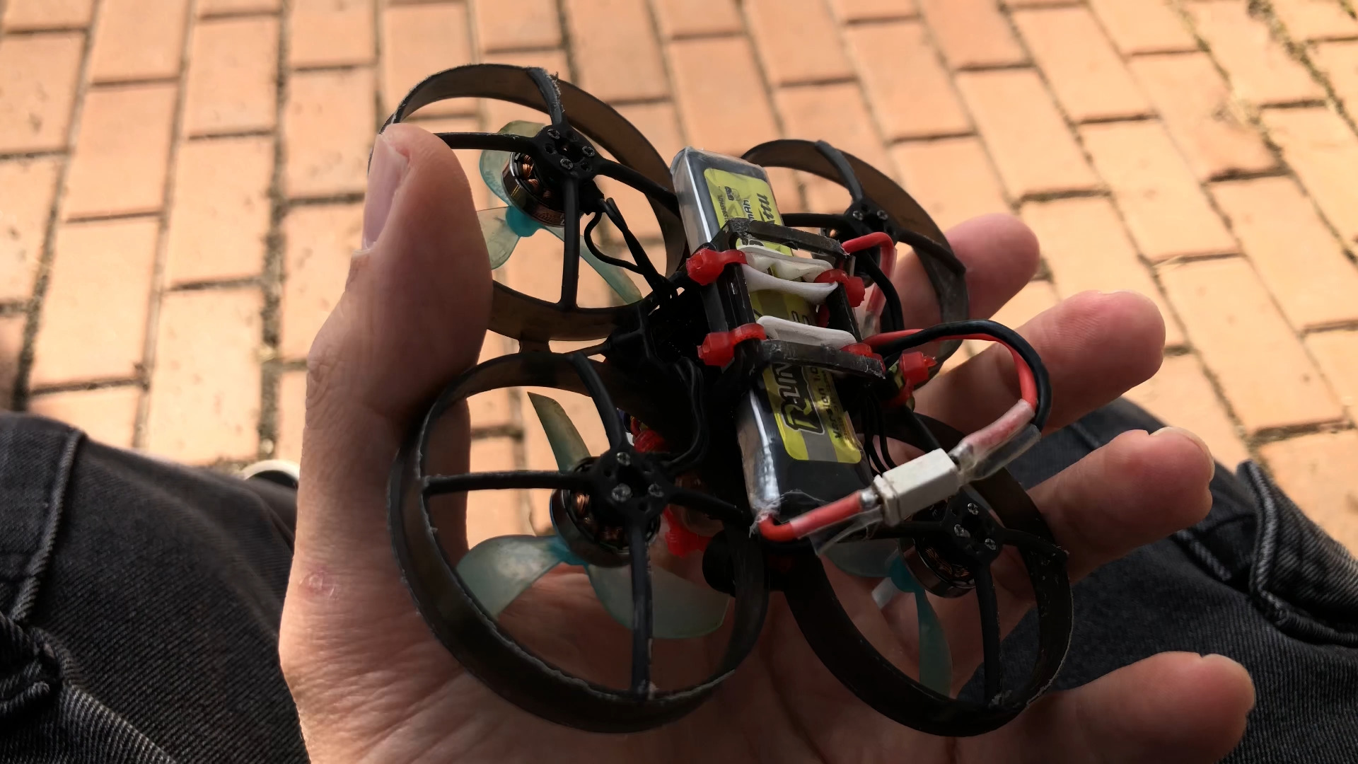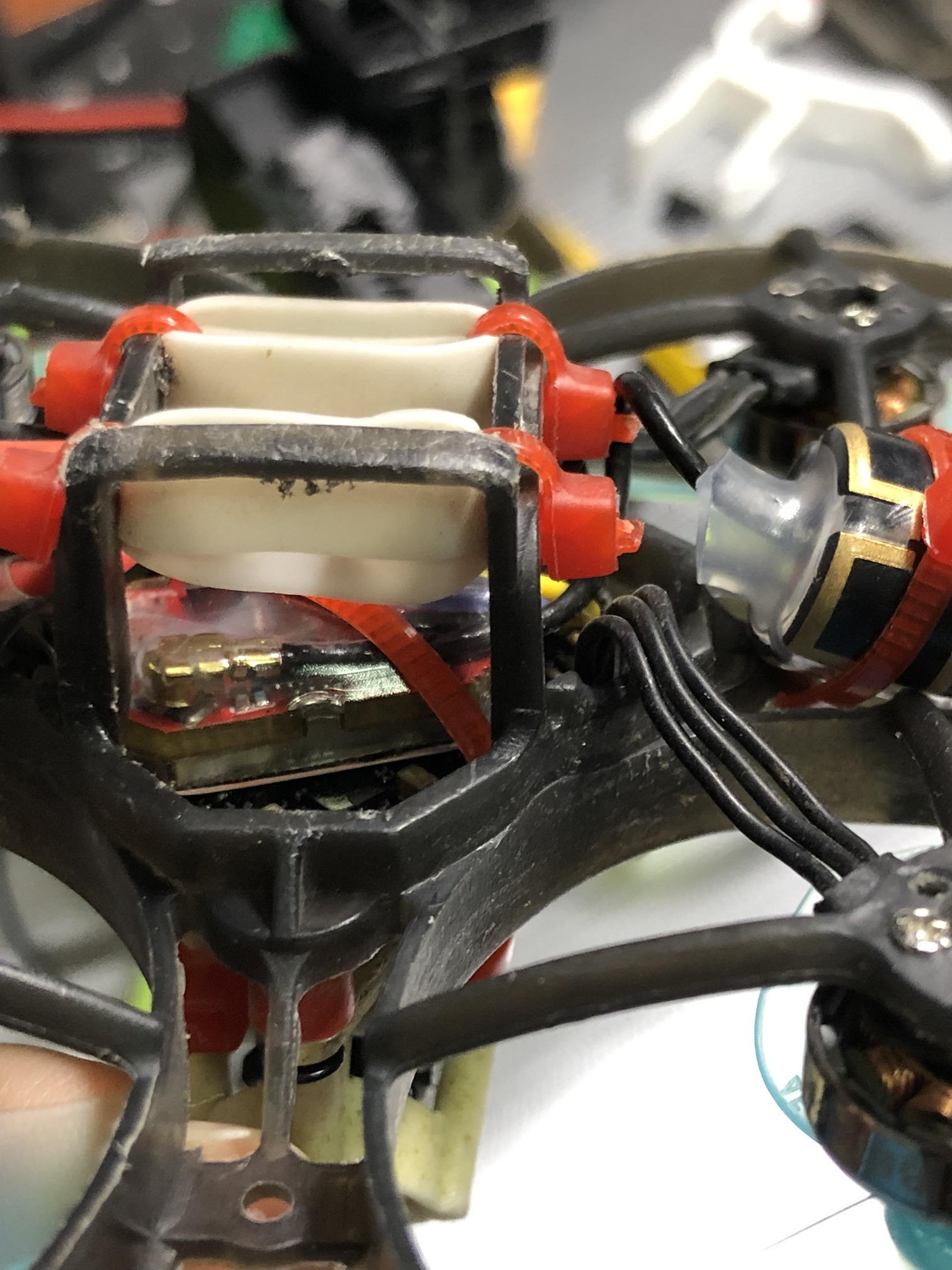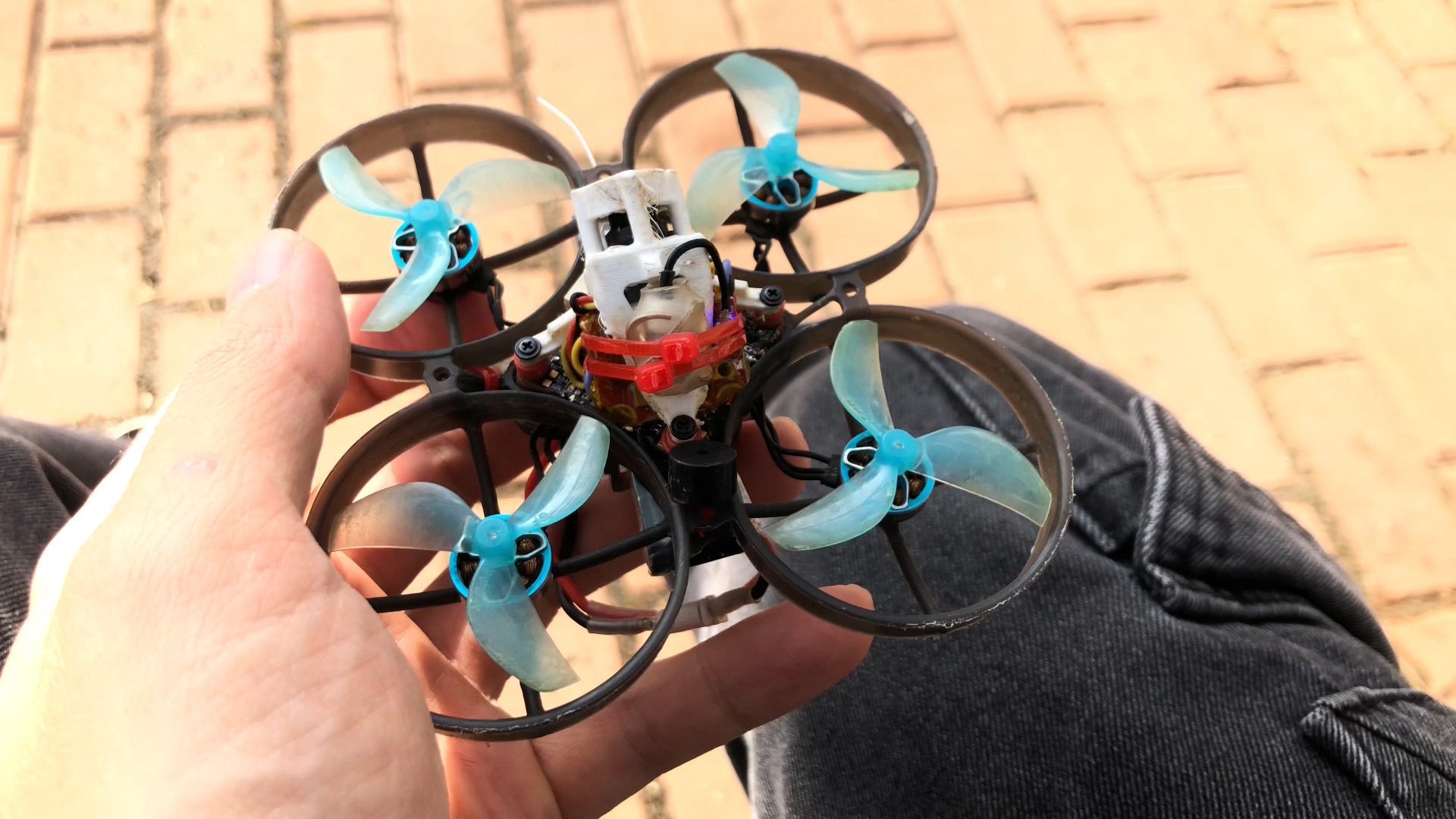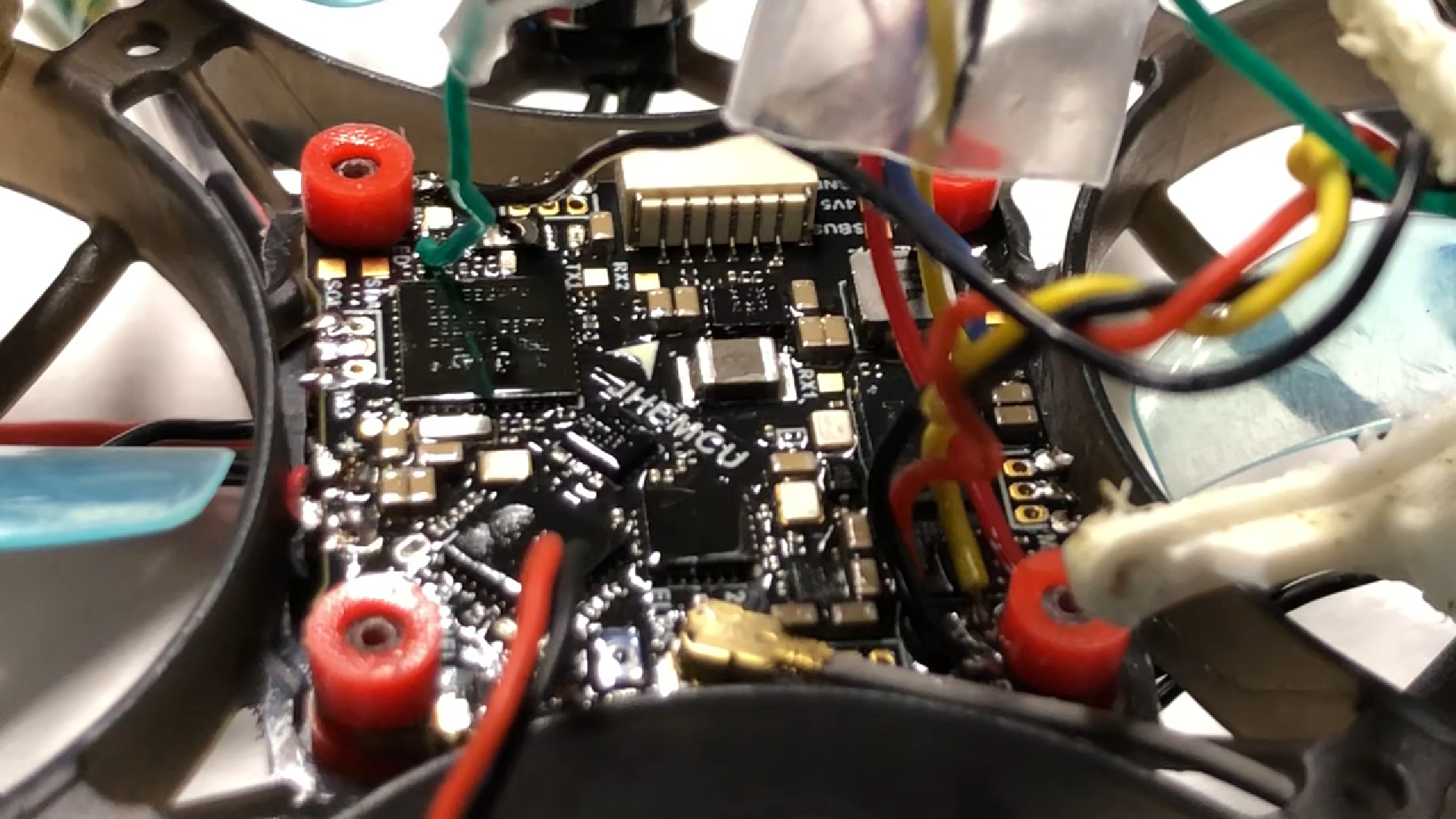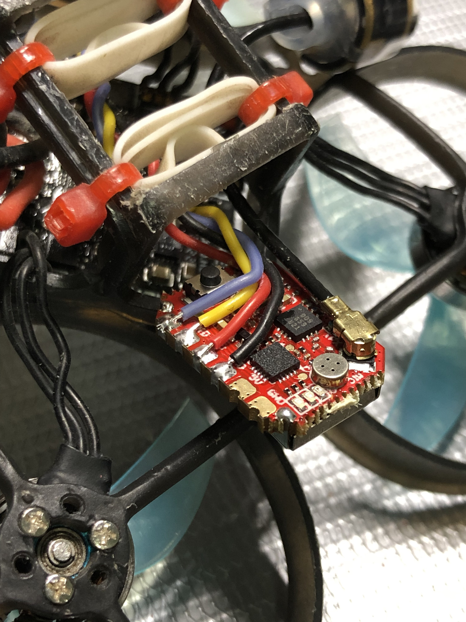 Highlights of this build’s configuration: 1s, PAL analog, OSD profile change on a pot, VTX power change on a pot, turtle mode without arming, full weather protection, battry crash protection, RHCP antenna for VTX, whip-style antenna for RX, buzzer, 220uf 16v cap, tuned filters.