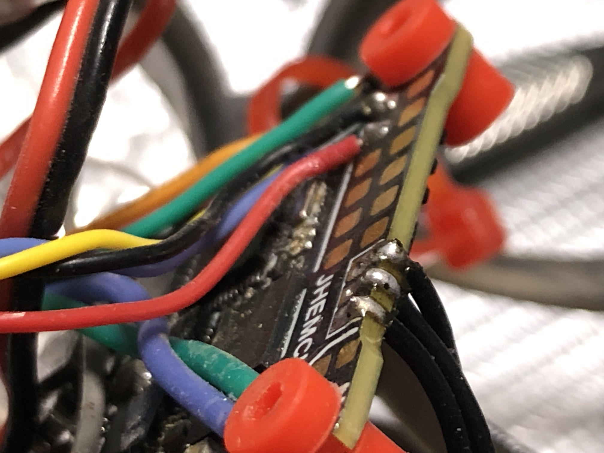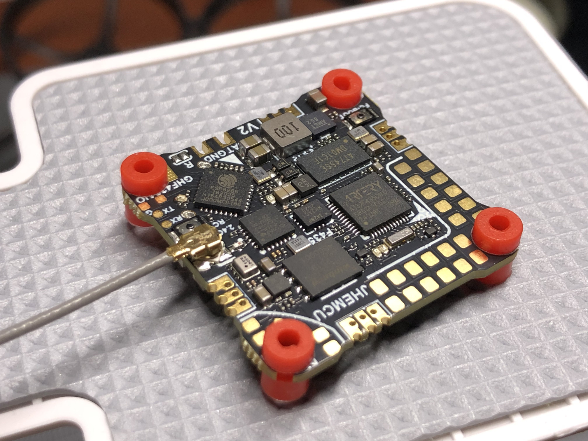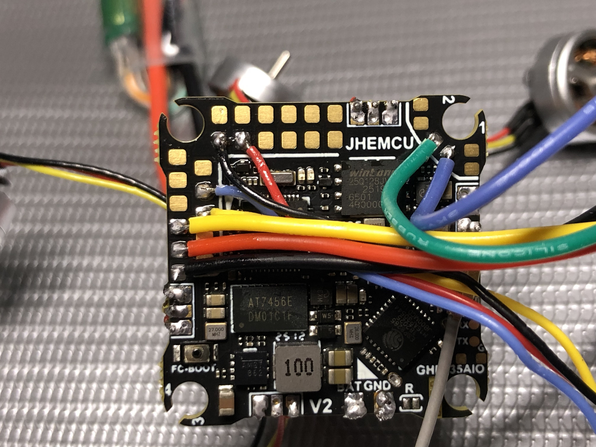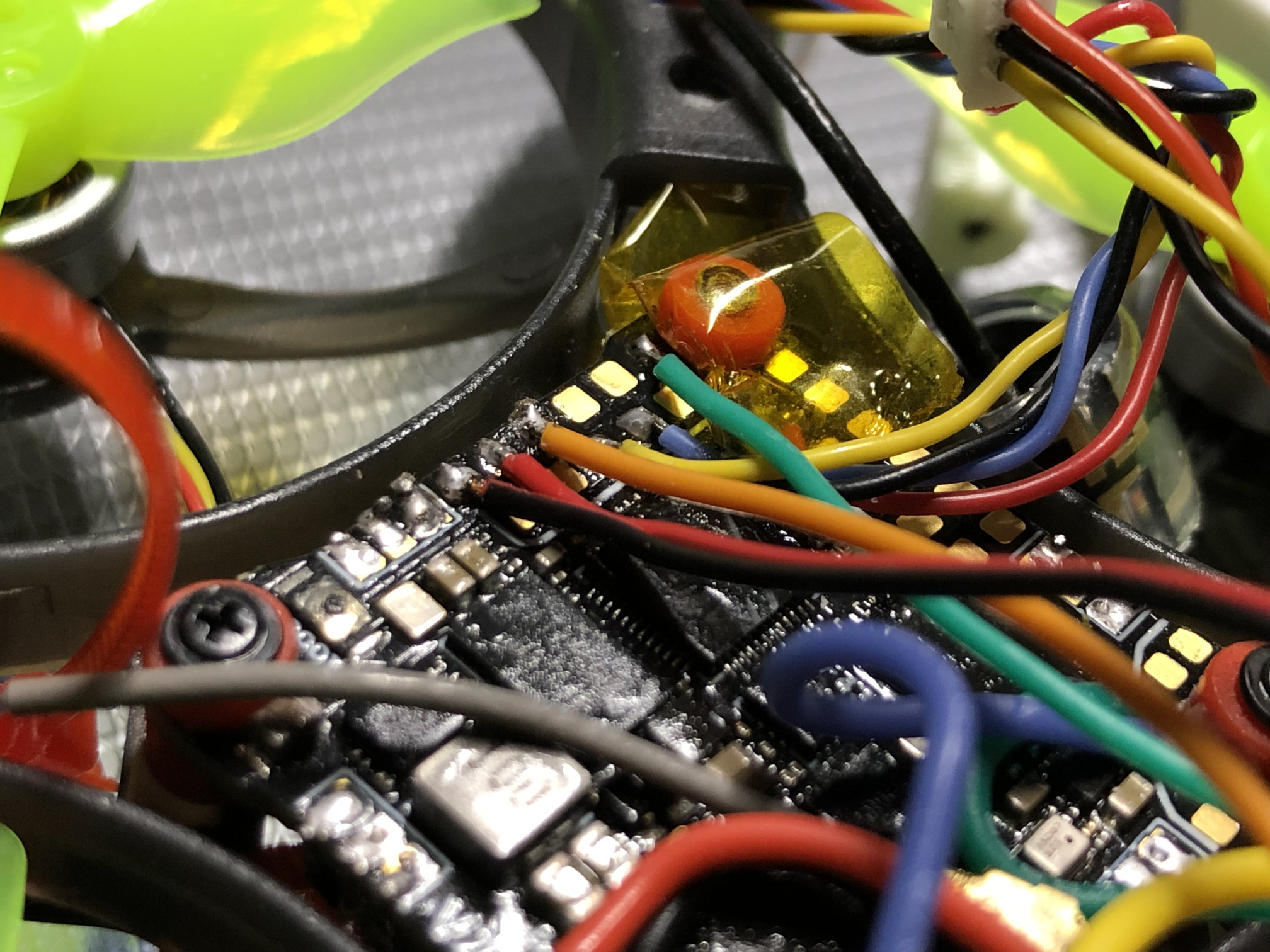 use rosin-free flux paste and 63% tin soldering thread (melts at around 183 degrees), clean the board with isopropyl alcohol after soldering. apply P-1025 conformal coating to the FC and VTX boards. add Kafuter K-705 silicon sealant to the places where wires are soldered to the FC pads, U.FL connectors on FC and VTX. apply blue Loctite-243 onto last threads of the motor screws.