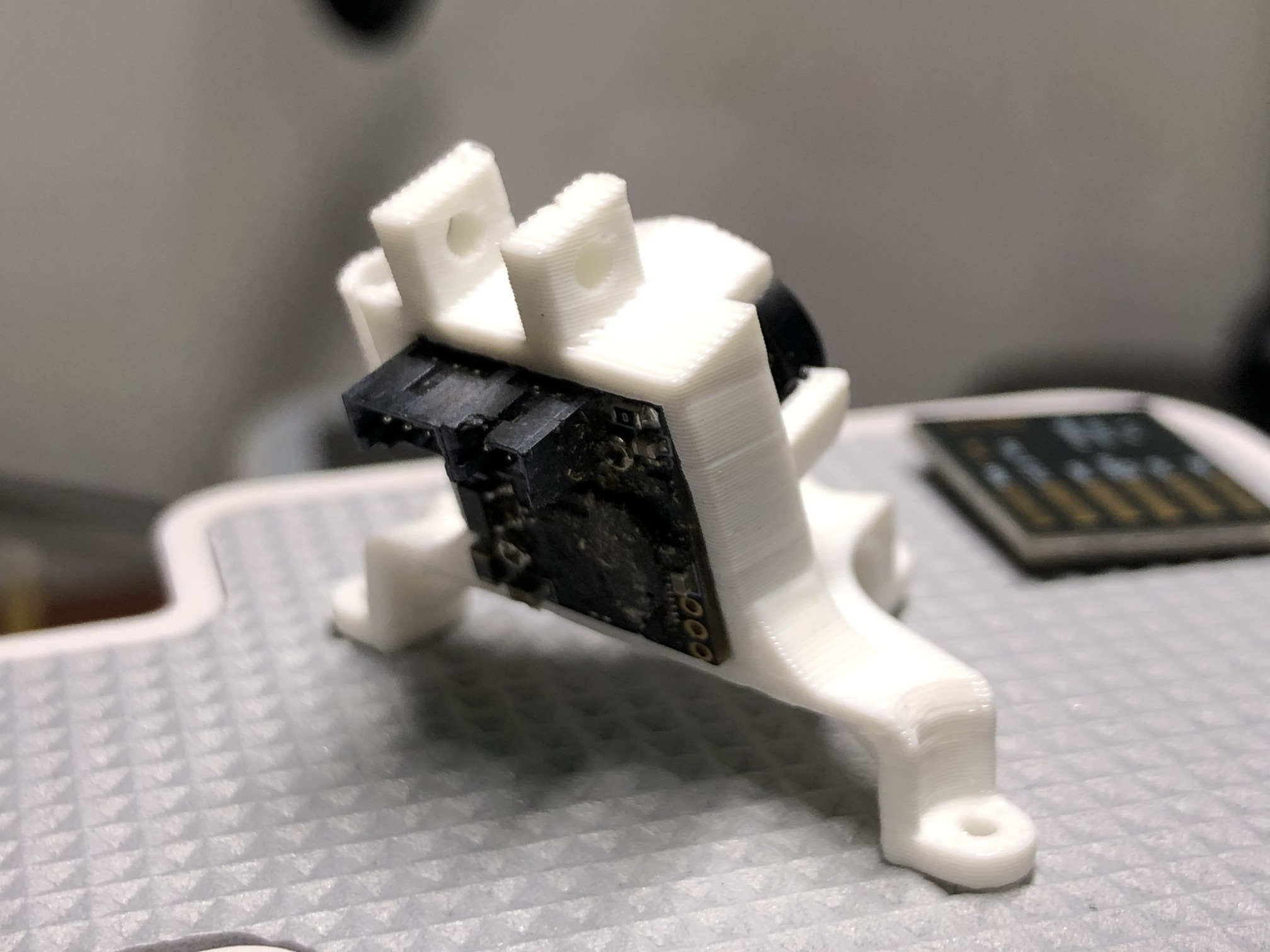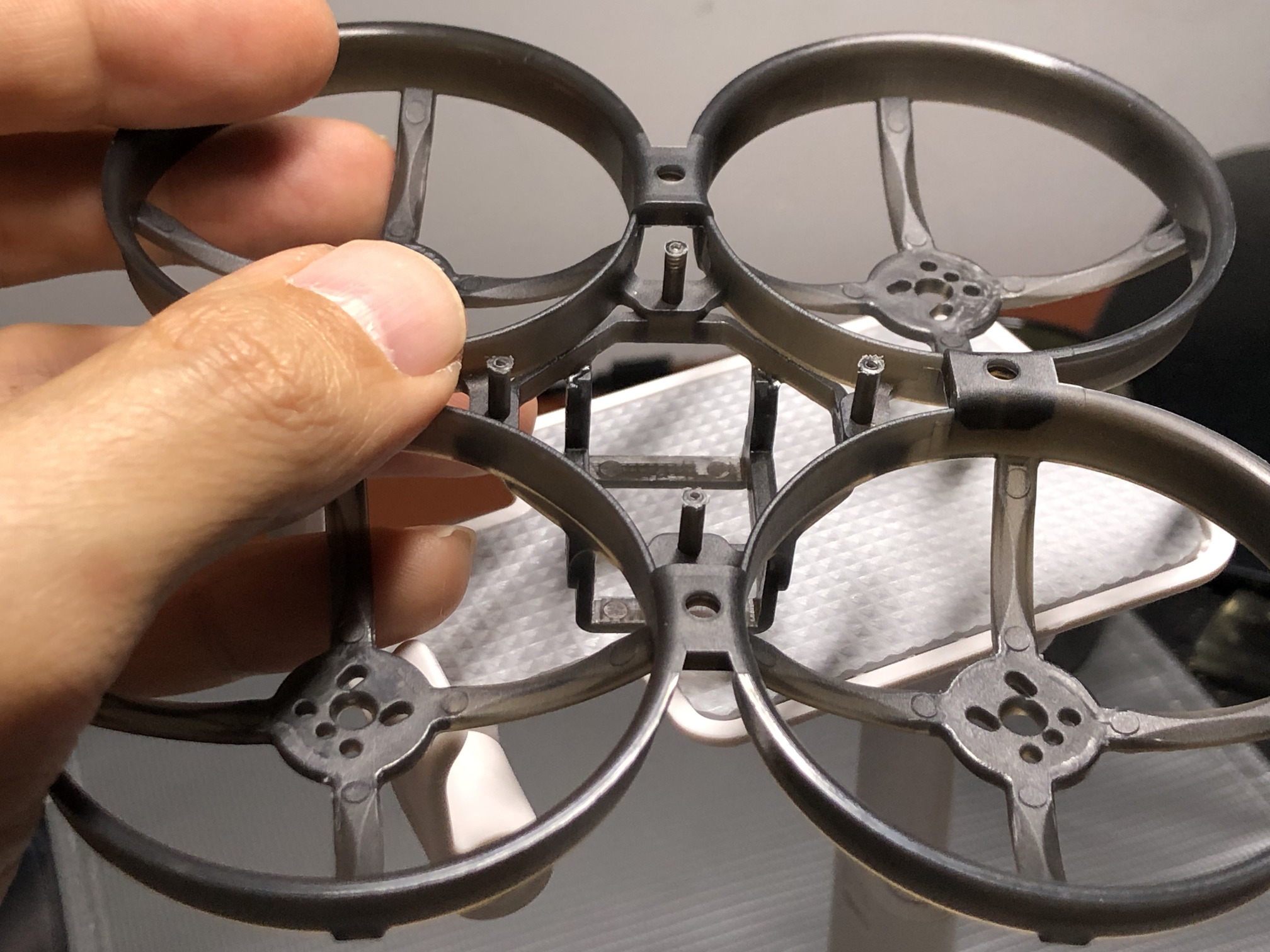 3 M1.4x5 or M1.4x7 screws (with coarse thread for plastic). there is a mount to use with FPV camera that would lift the runcam higher above the frame. I used Removable_V2_BlueJay_Canopy_with_Thumb_Pro.stl from that thing and the top part of the original Runcam Thumb 2 mount.