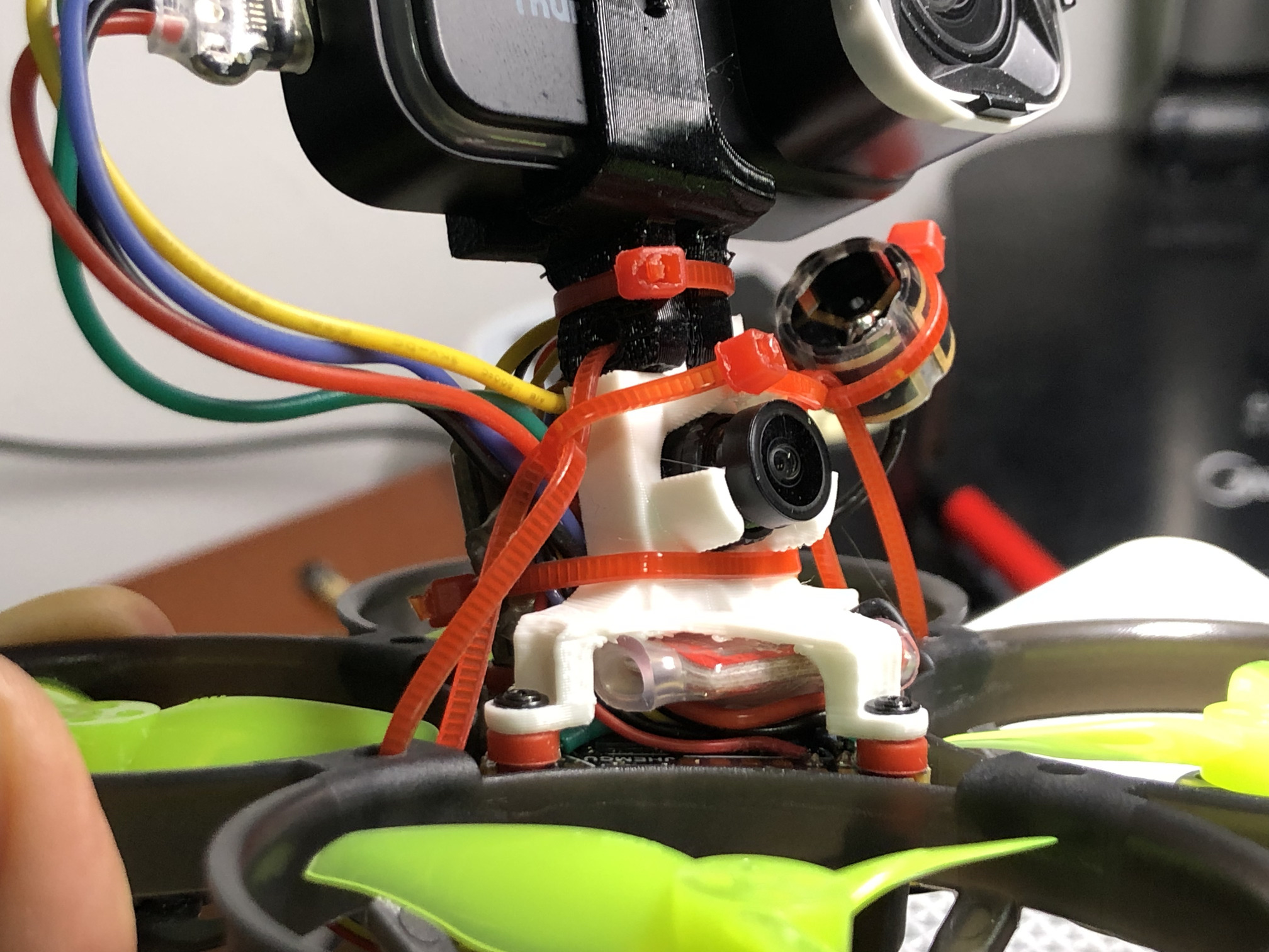 Here’s how I built a cinewhoop using Mobula8 frame and Runcam Thumb 2 (codename not mobula8). I decided to build it on a FC with fast modern MCU from ArteryTek and new industry standard gyro ICM42688P. the Runcam camera will act as both the fpv camera and the 4K cine camera. having a live preview in the goggles is super convenient for dialing in Runcam’s manual exposure settings. highlights of the build: live switching between the cameras, Runcam camera control from the radio, VTX power level adjustment on a pot, turtle mode without arming, RHCP antenna for VTX, whip-style antenna for RX, low esr capacitor.