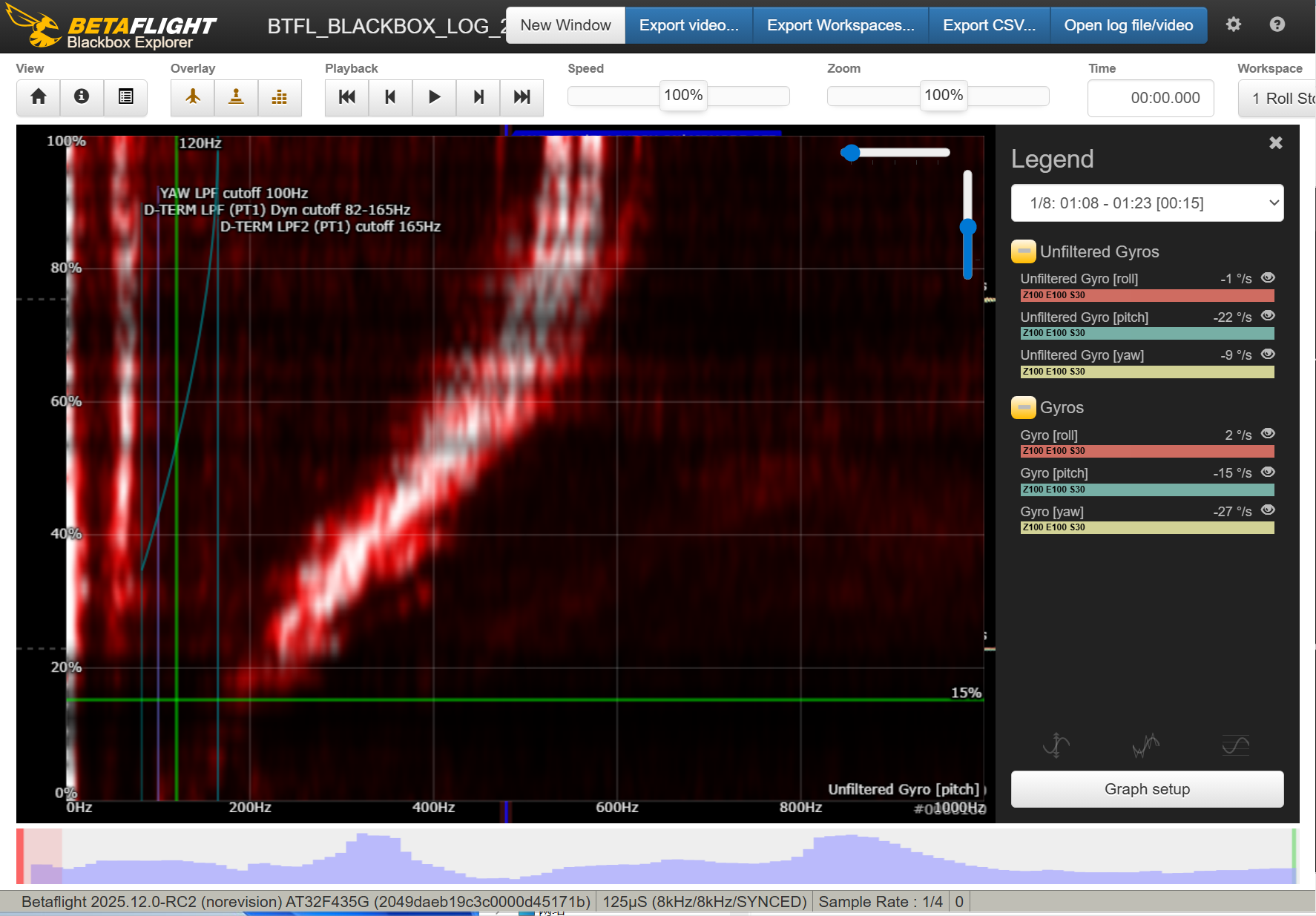 blackbox for filter tuning (2kHz). for PID tuning it will be set blackbox_sample_rate = 1/2 (4kHz)