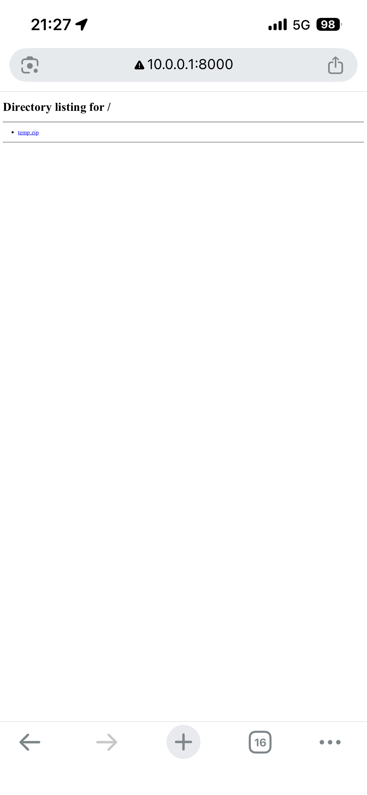 Then I navigated to http://10.0.0.1:8000 in the browser and downloaded the file. And this is how someone got their files in time. Also, for this to work the other way (to put files to the pendrive), generally: the pendrive volume on the rpi must be mounted as sudo mount /dev/sda1 /mnt/usb -o rw,uid=1000,gid=1000, then